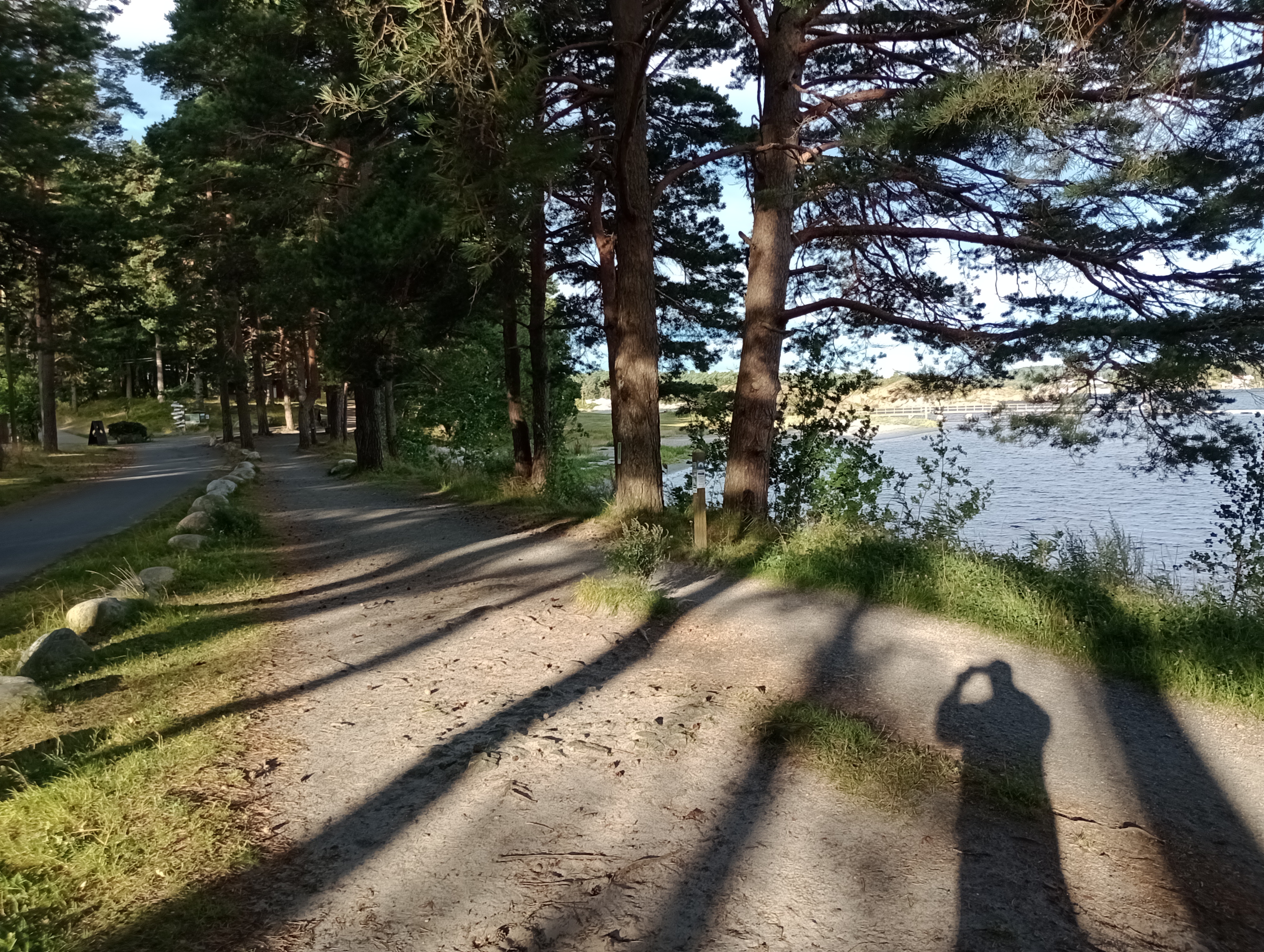 I går var en temmelig grå dag og noget blæsende men i onsdags havde vi en rigtig fin tur. Vi gik en runde på en lille halvø som ligger få kilometer fra campingpladsen. Vi tog Trangiaen og fiskegrejet med. Jeg fandt nogle svampe i skoven undervejs og ude på enden af halvøen fangede jeg fire makreller i ét hug. De blev stegt på stedet i smør og serveret med smørstegte løg, hvidløg, rød peber og svampe. Absolut fremragende.